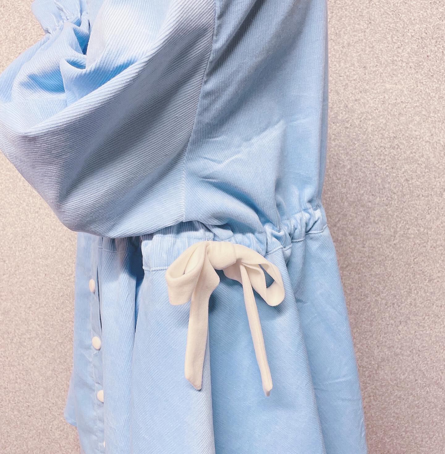 ウエストはサイドリボンでキュッと結ぶ仕様にしたため
